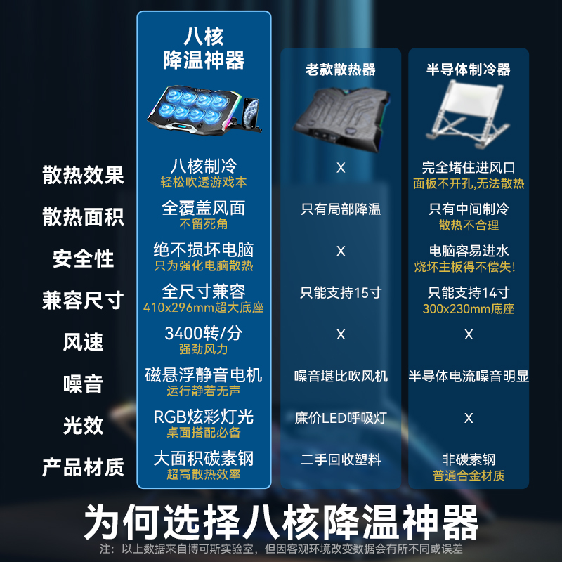 博可斯笔记本散热器底座手提电脑支架风扇风压式 游戏本降温散热板架静音适用于华硕拯救者外星人机械革命枪神