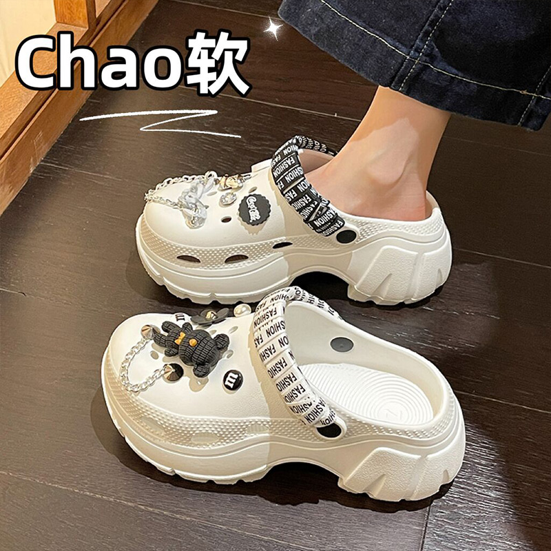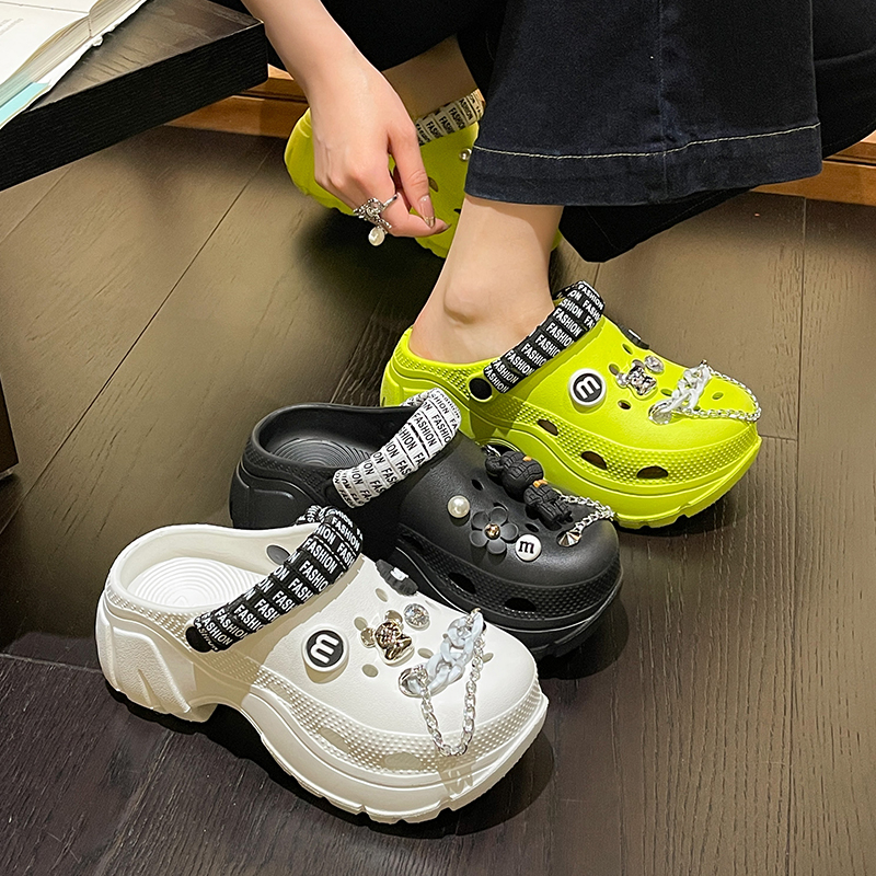 ins增高防滑海边沙滩包头凉拖鞋 厚底洞洞鞋 时尚 外穿韩版 夏 女夏季