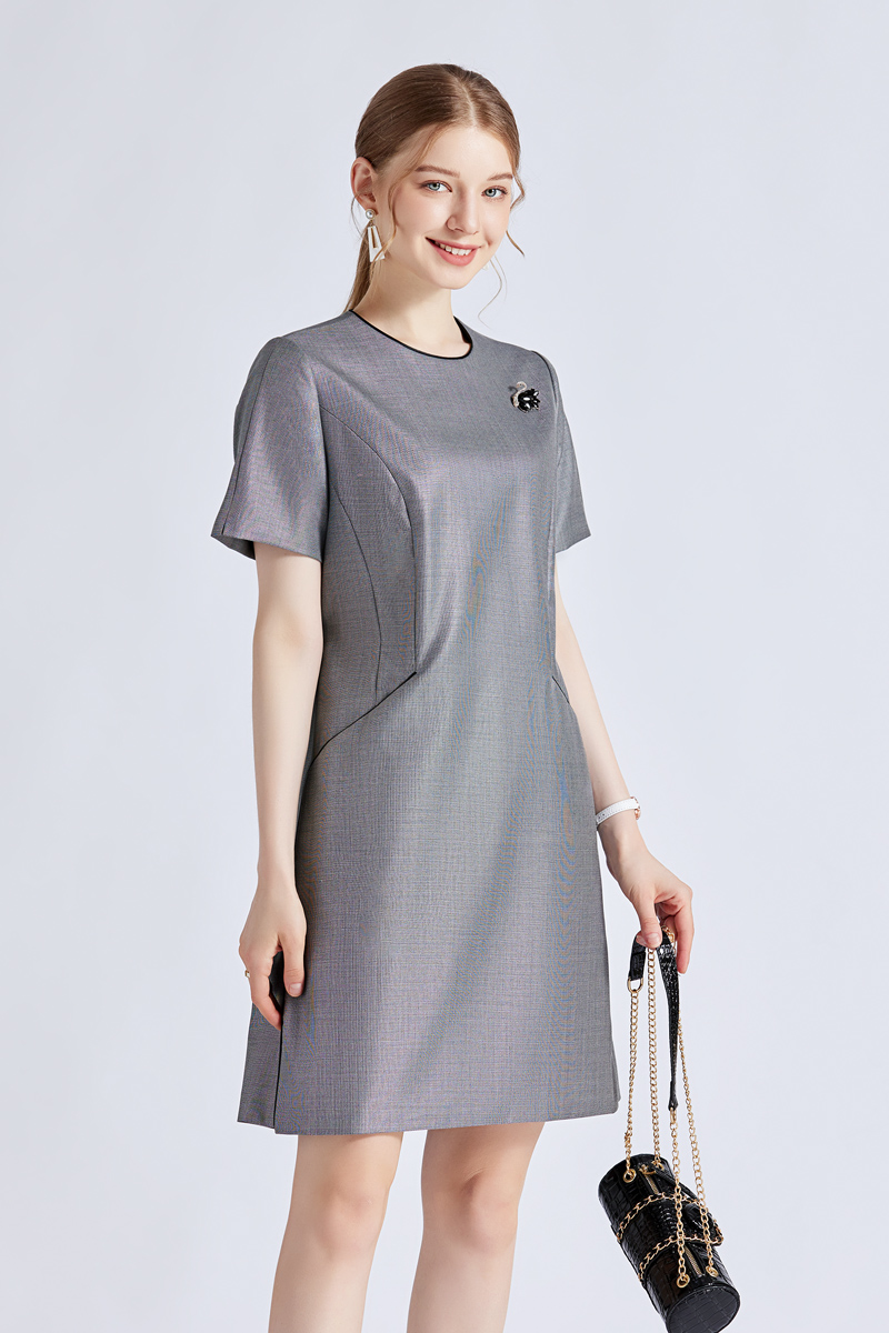 赢智尚连衣裙秋新款 安可拉红100绵羊毛优雅礼服裙气质显白裙子女