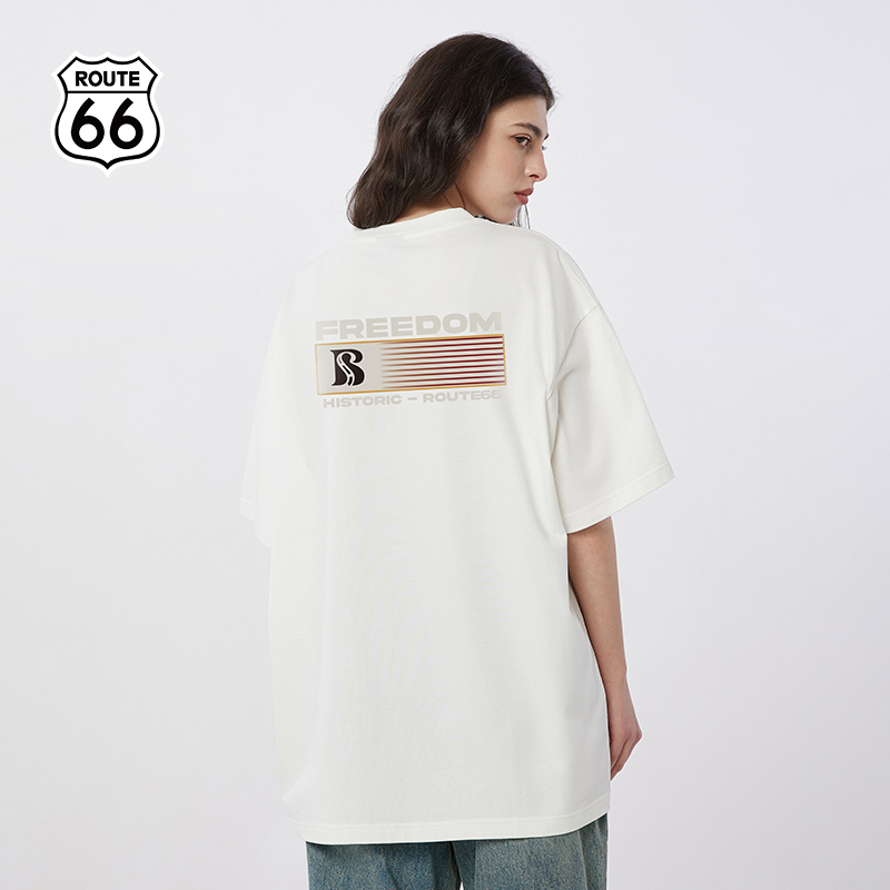 清仓价 男女同款 66号公路 t恤夏季 上衣 ROUTE66发泡印花短袖