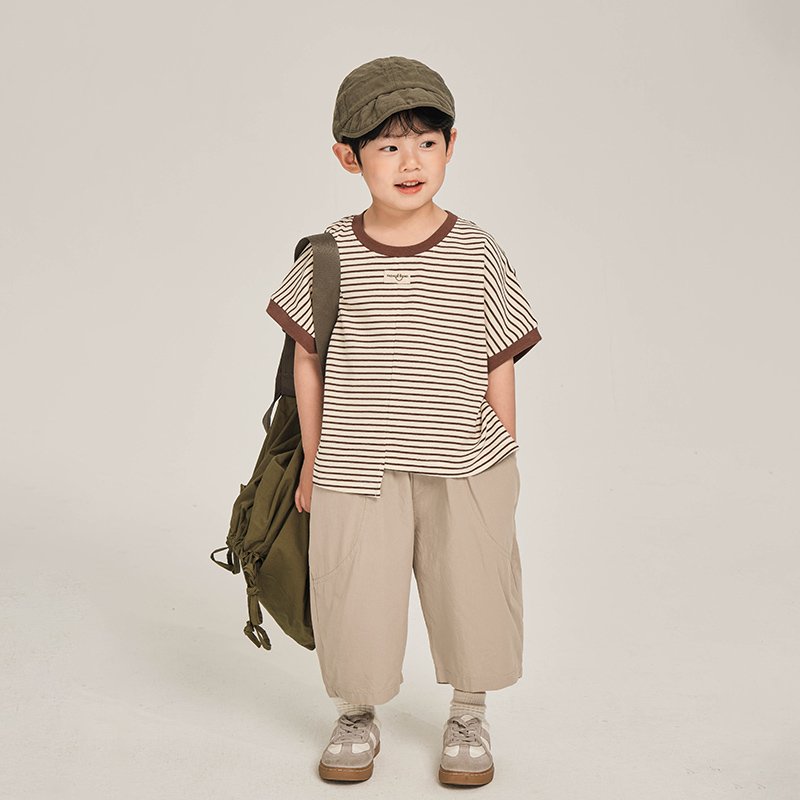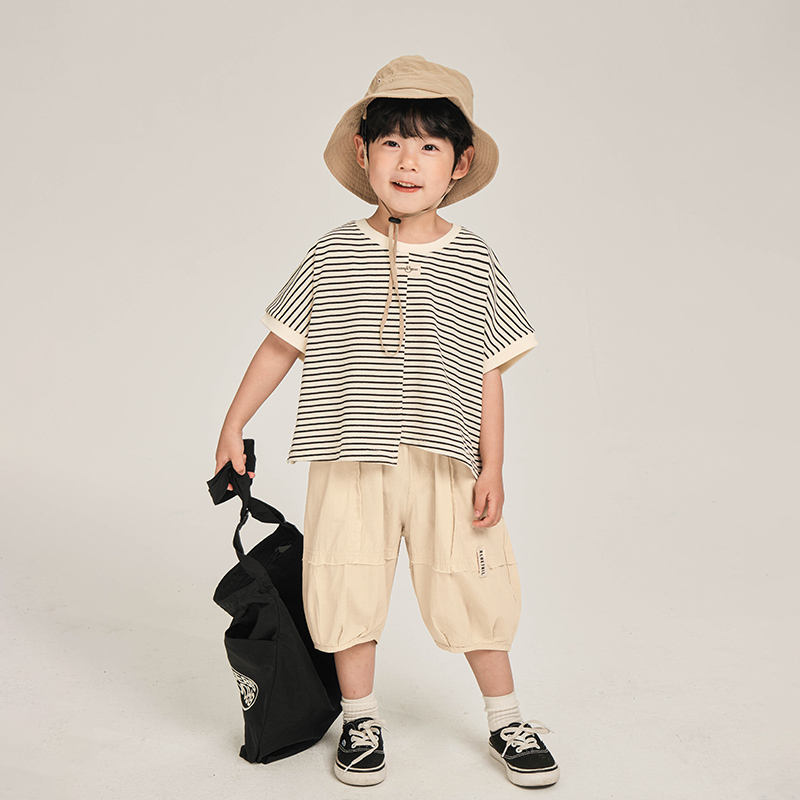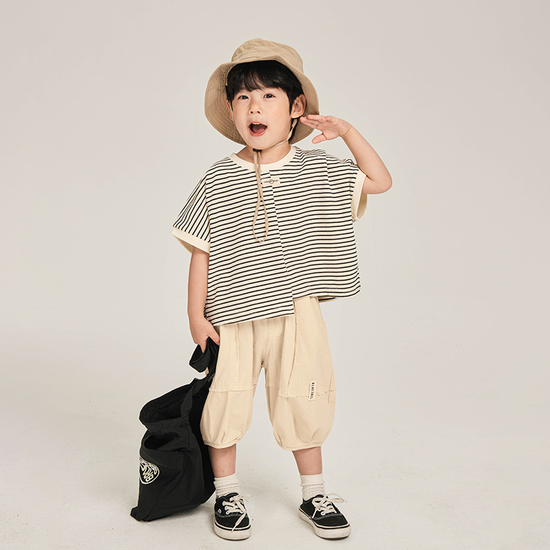 半袖 男童短袖 儿童中小童条纹拼接上衣宝宝薄款 新款 t恤2025夏装
