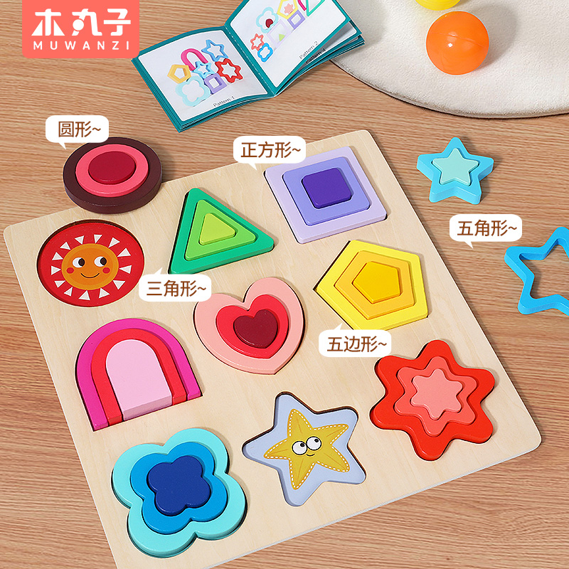 蒙氏形状配对几何拼图板玩具儿童手抓嵌板益智积木宝宝男女1孩3岁