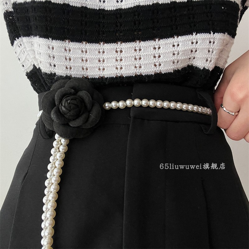 饰皮带女款 山茶花腰链配饰花朵法式 珍珠腰带女配连衣裙裙子收腰装