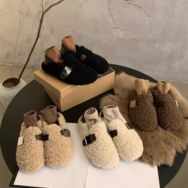 平底加绒保暖瓢鞋 2023冬新款 孕妇 女外穿一脚蹬豆豆鞋 仙女风毛毛鞋