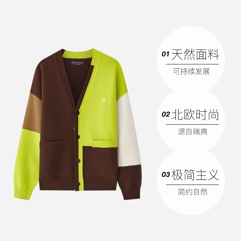 Polo 商场同款 开衫 Marc 绵羊毛多色拼接落肩长袖 男 自营