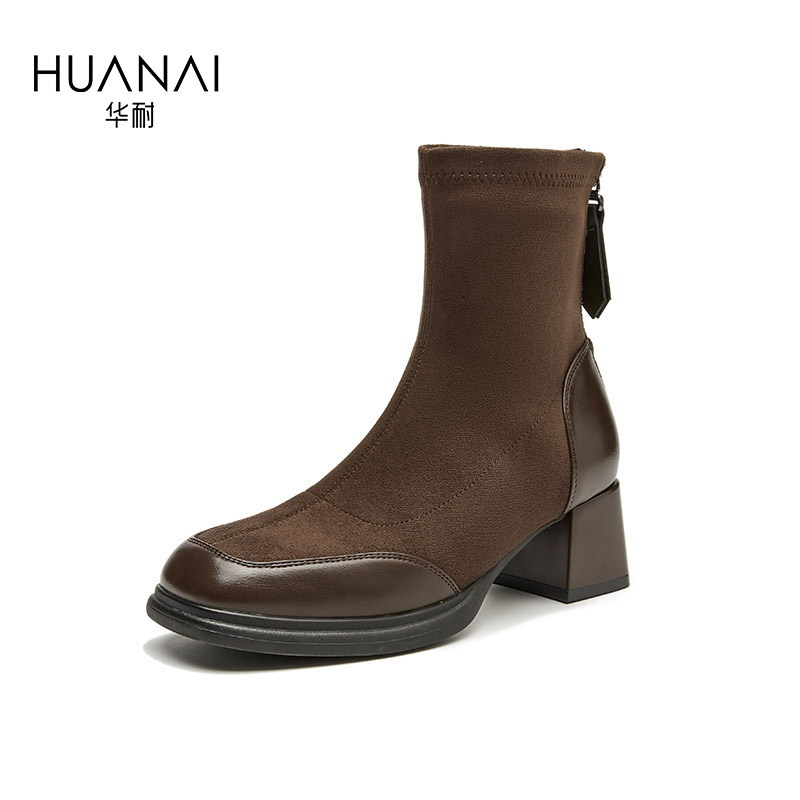 华耐高跟短靴女秋冬新款 瘦瘦靴气质小踝靴 小香风超火女靴法式