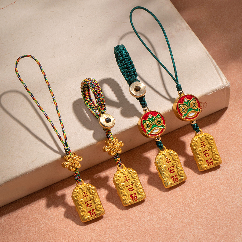 琼睿黄铜护身平安符牌汽车钥匙扣挂绳挂件男女款 挂饰手机链挂件绳好运小钥匙链防丢u盘挂件小吊坠本命年挂坠
