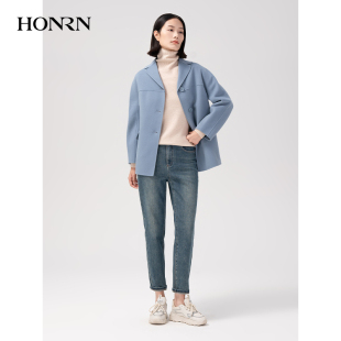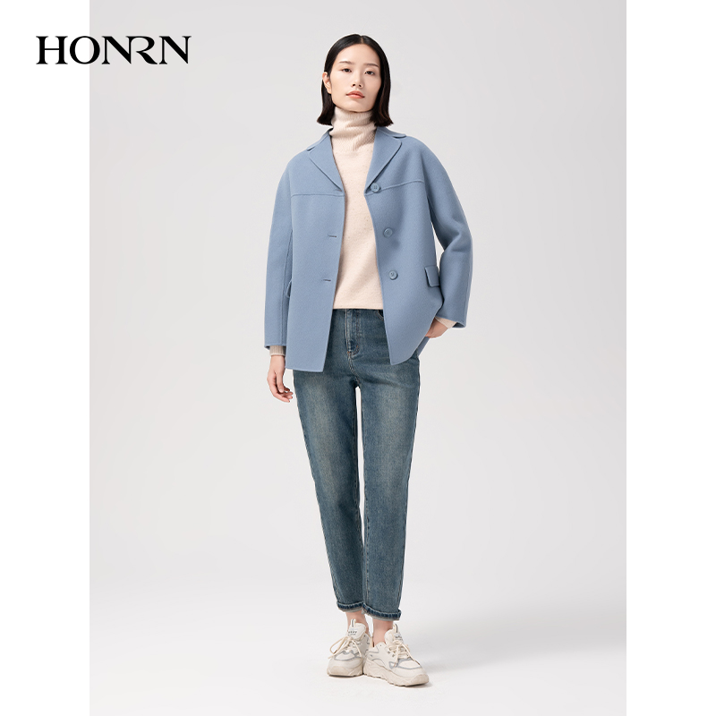 RUISHI芮时 重磅驼绒桑蚕丝羊毛慵懒两穿领毛呢大衣女秋冬外套女