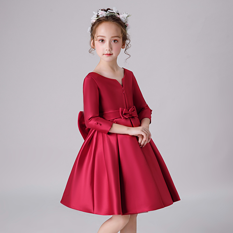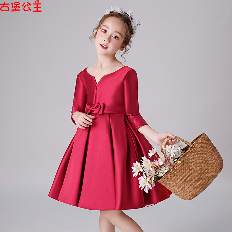 女童礼服小女孩生日公主裙儿童轻奢高端红色主持人裙子钢琴演出服