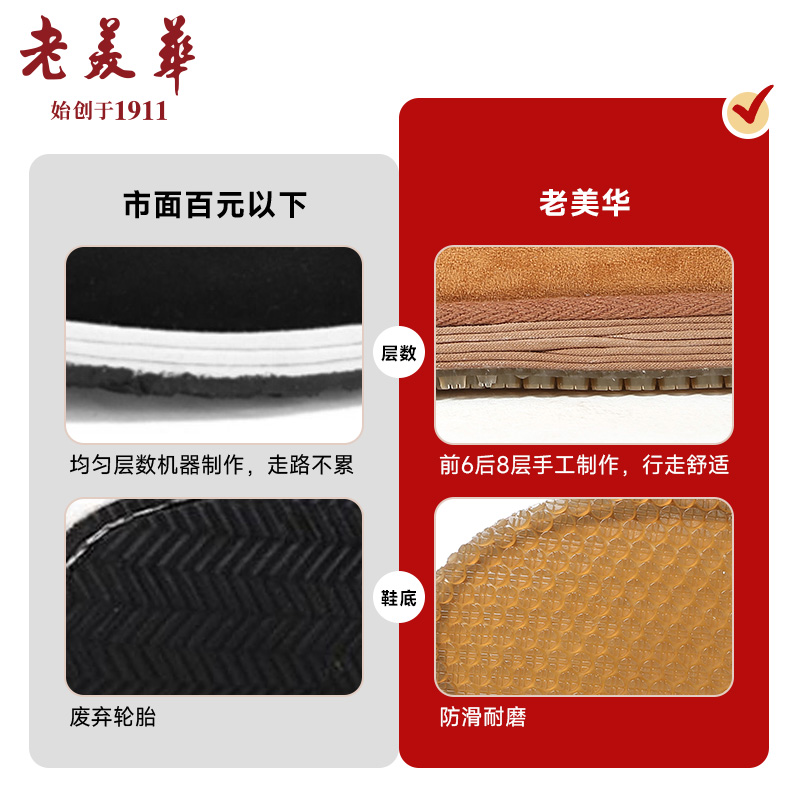 冬季 老美华情侣同款 加绒加厚保暖千层底麂皮绒布鞋 绵羊毛内里