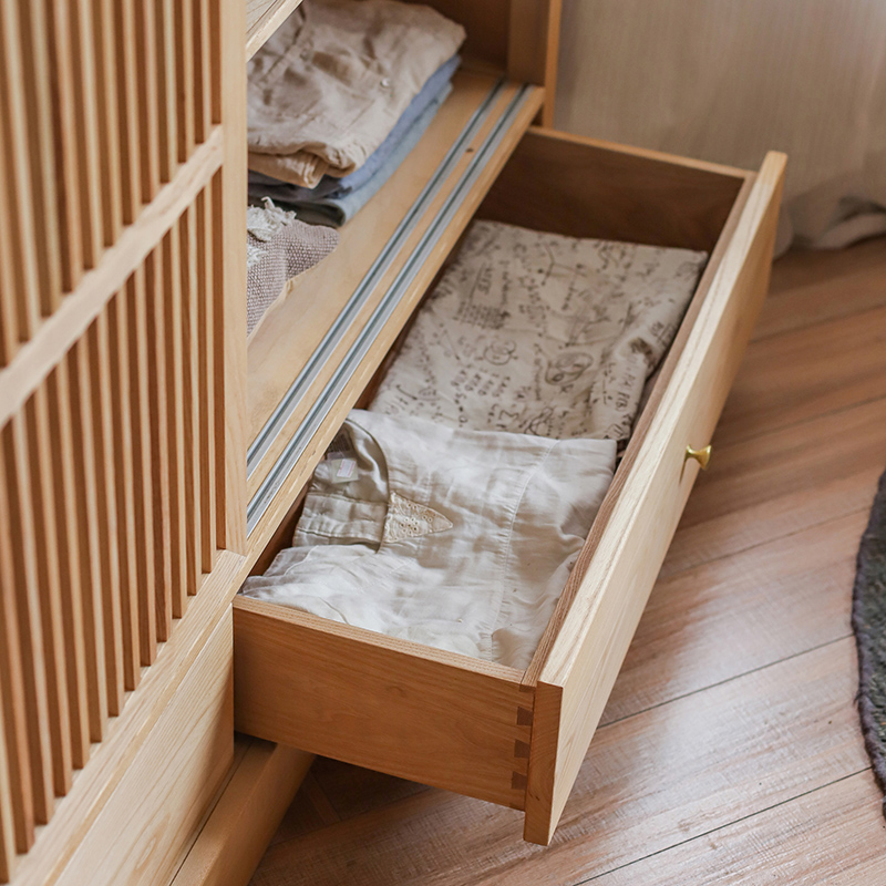 实木衣柜白蜡木日式 推拉门衣橱北欧家具 简约卧室衣服收纳柜可拆装