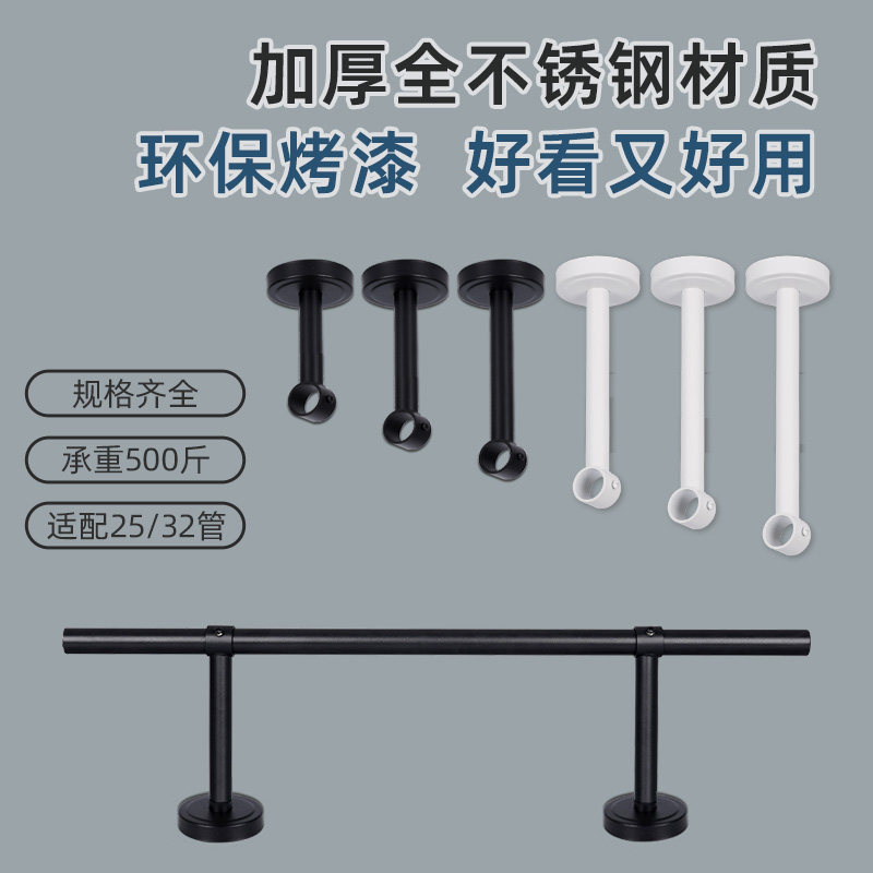 晾衣架顶装 生活阳台打孔晾衣杆不锈钢晒衣架吊座白色32mm 固定式