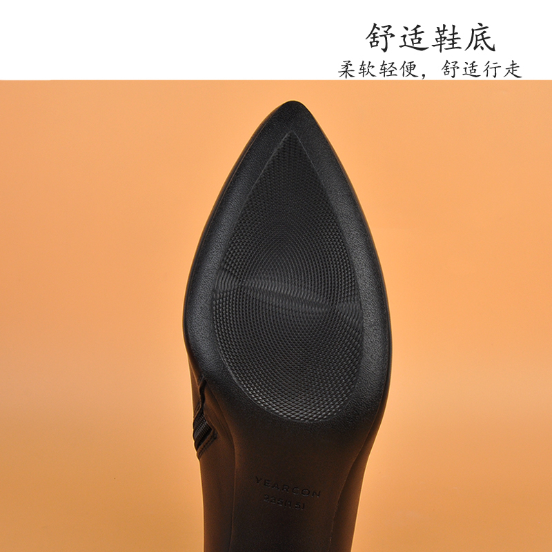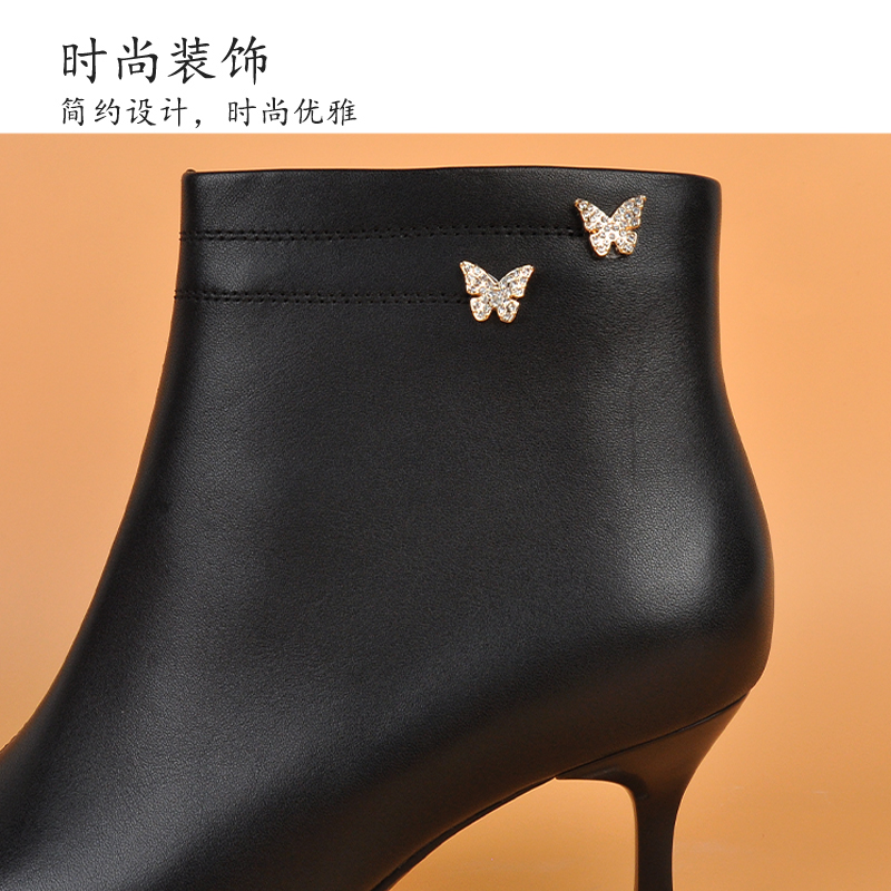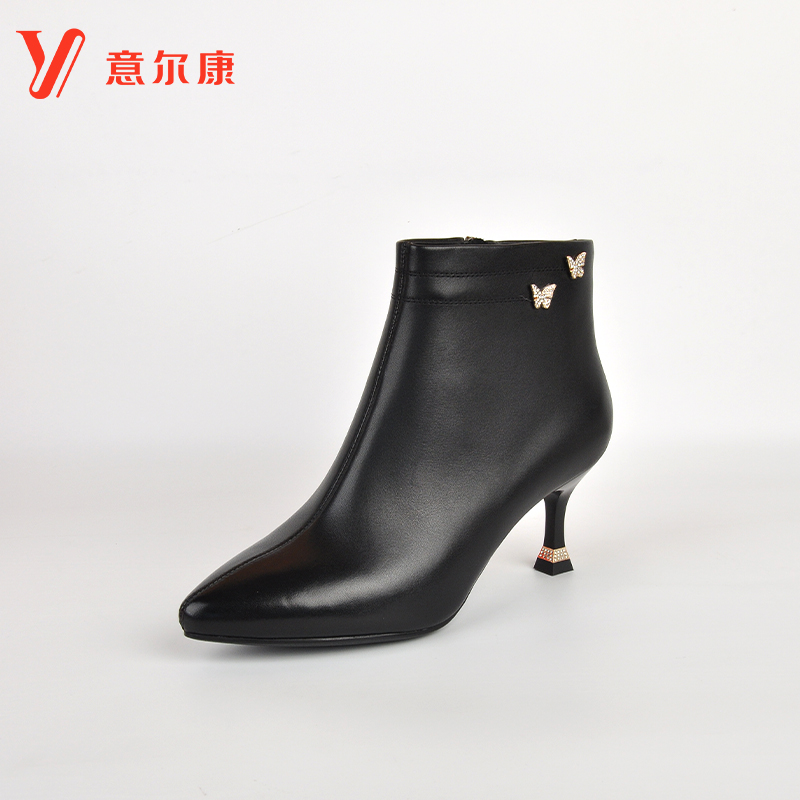 意尔康加绒秋冬季 短靴女细跟性感靴子高跟短筒瘦瘦靴气质尖头女鞋