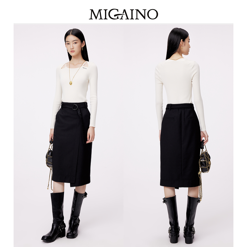 歌莉娅针织抓绒半身裙女秋冬流行穿搭高腰黑色包臀裙子1BSJ2D020