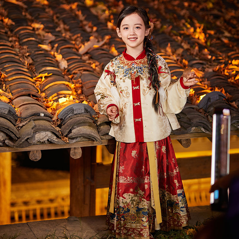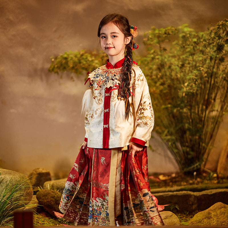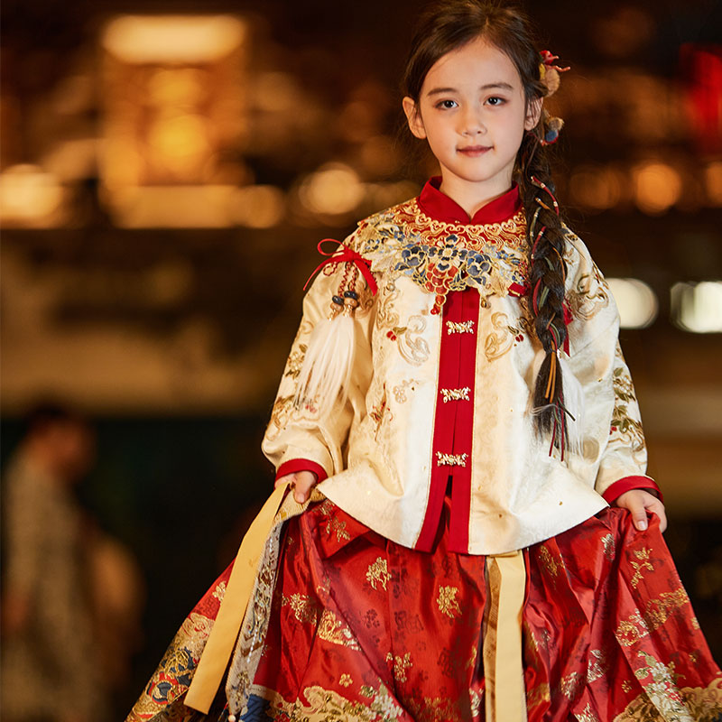 汉服秋冬女童儿童马面裙拜年服新款 唐装 加厚 九曜金枝 十三余童装