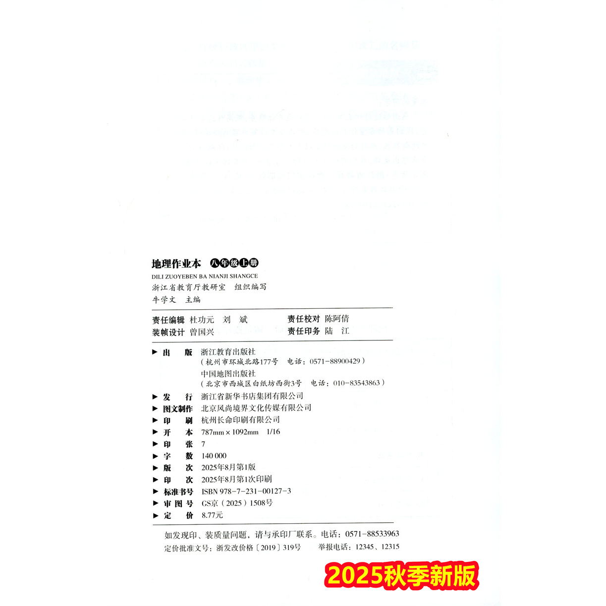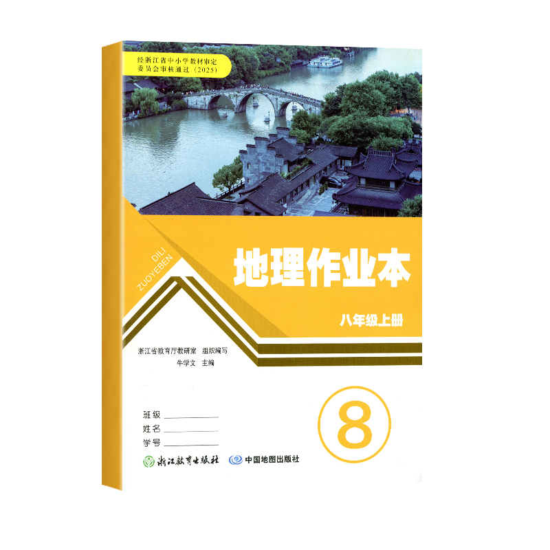 2025秋季 测试题浙江教育出版 新版 初二8年级上册义务教育教材同步辅导练习册单元 社 历史与社会作业本地理八年级上册人教版 学校同款