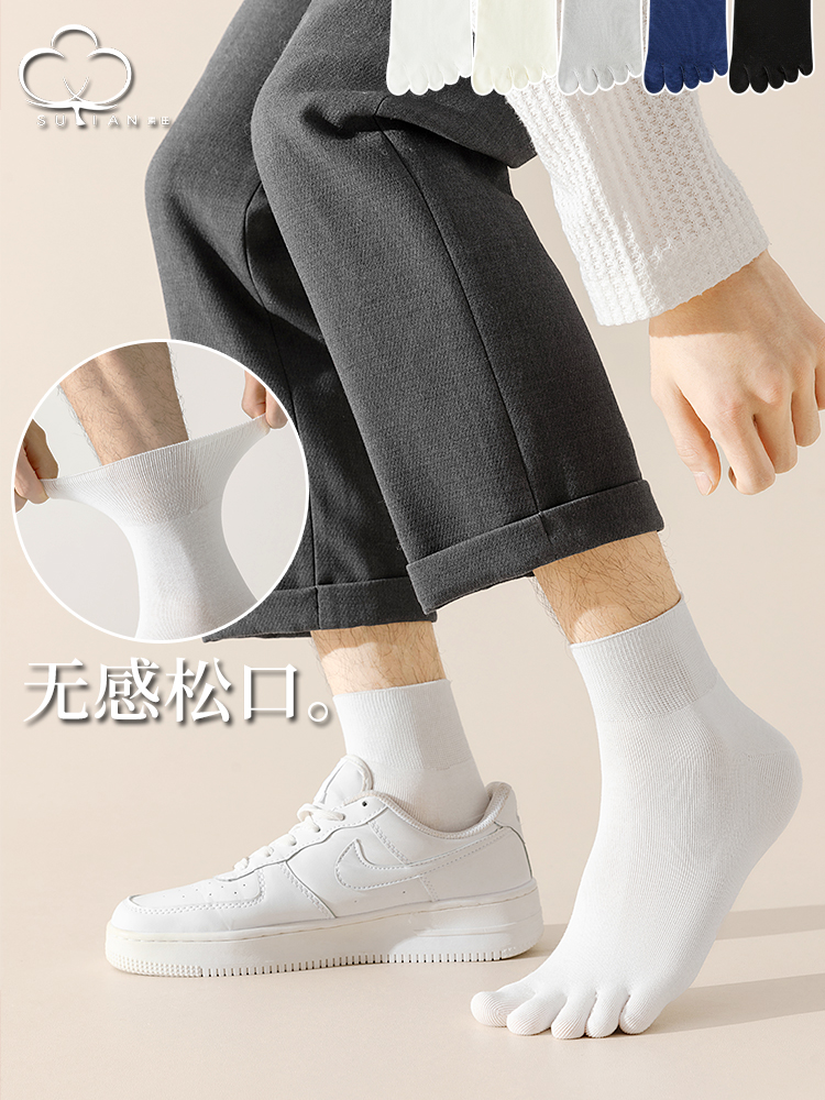袜子男中筒袜宽松分趾袜男生松口运动袜防臭吸 五指袜男士 清仓