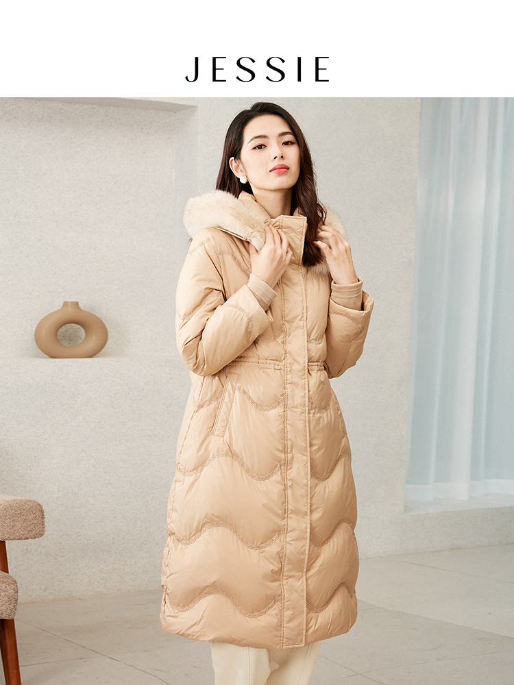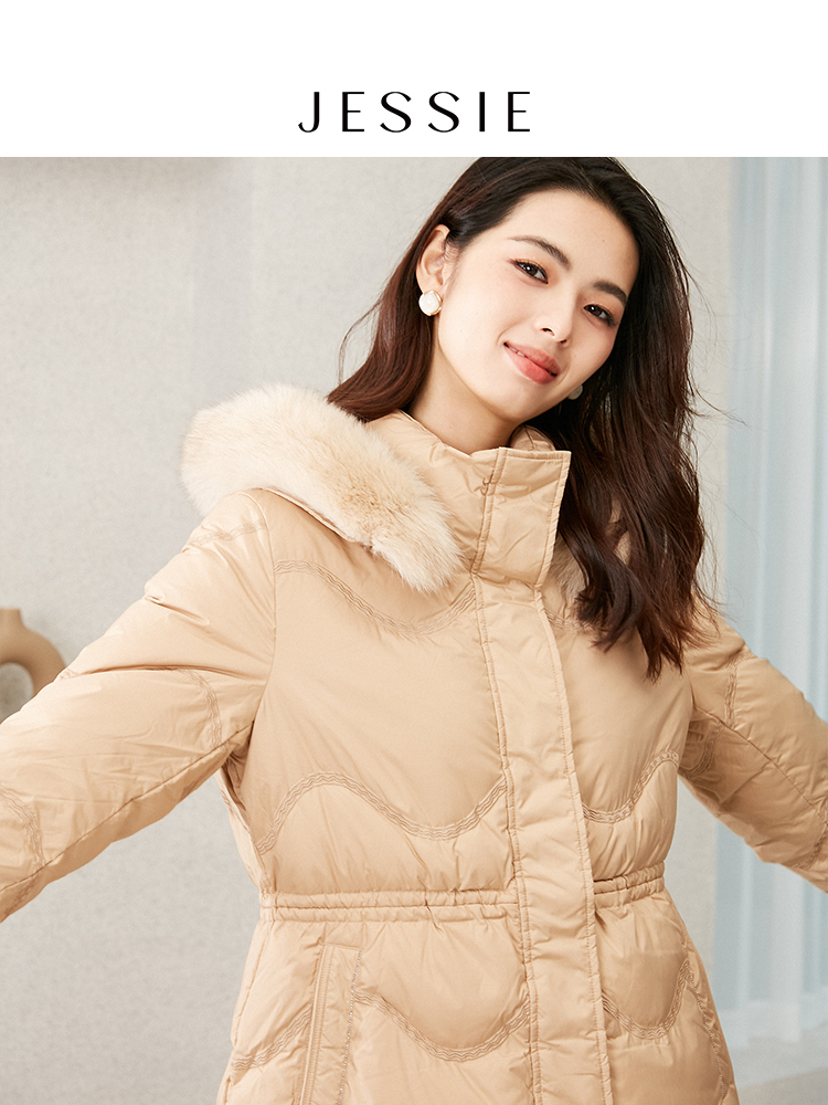 中长款 新款 保暖外套 休闲狐狸毛领鹅绒羽绒服女冬装 JESSIE时尚