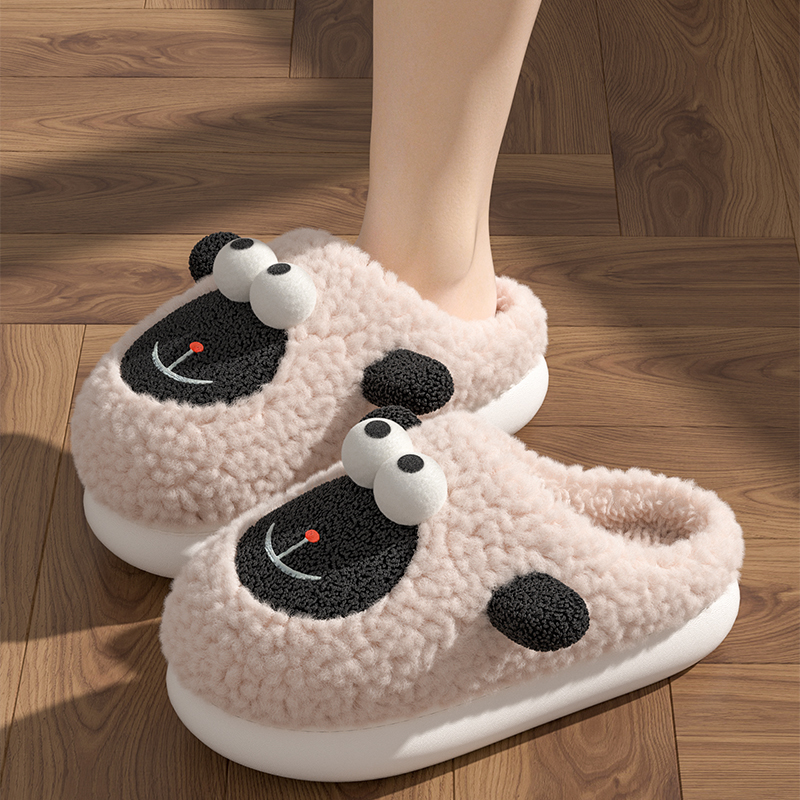 冬 卡通情侣居家室内防滑保暖厚底可外穿男士 可爱小羊棉拖鞋 女冬季