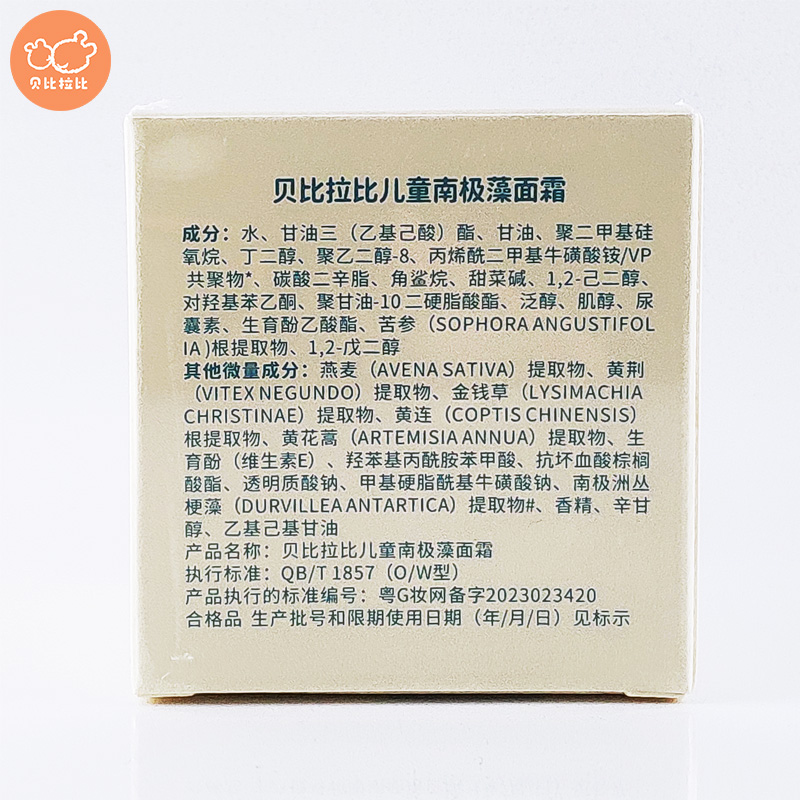贝比拉比儿童南极藻面霜65g特润保湿 儿童润肤乳 3岁以上护肤秋冬季
