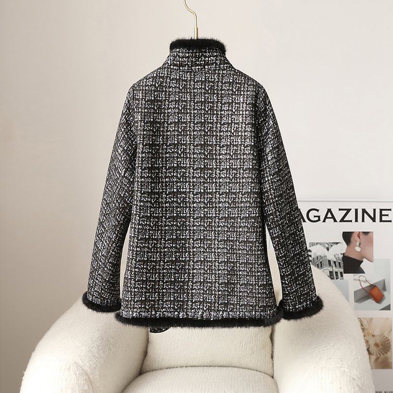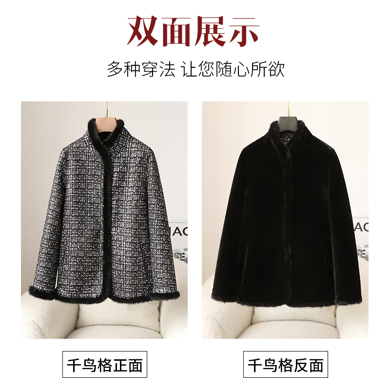 千鸟格两面穿皮毛一体外套女2023冬季 大牌拼接水貂毛格子皮草 新款