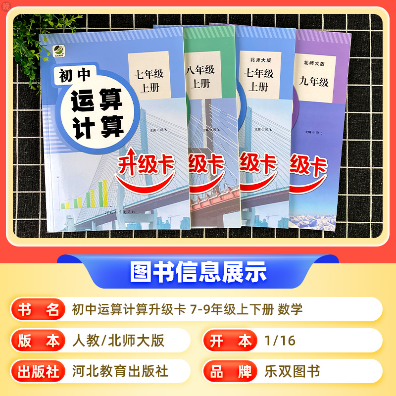 同步练习册中学生口算题卡天天练 北师大冀教版 正版 现货初中运算计算升级卡七八九年级数学专项训练下册上册强化计算题必刷题人教版