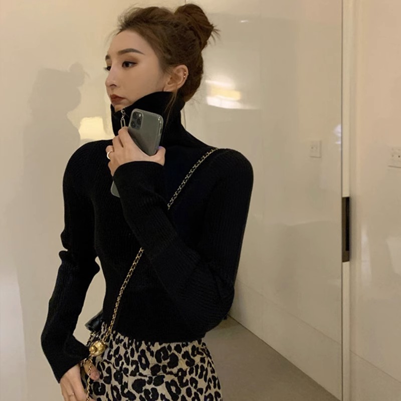 秋冬羊毛黑色内搭修身 2025新款 毛衣上衣 女半高领打底衫 猫人针织衫