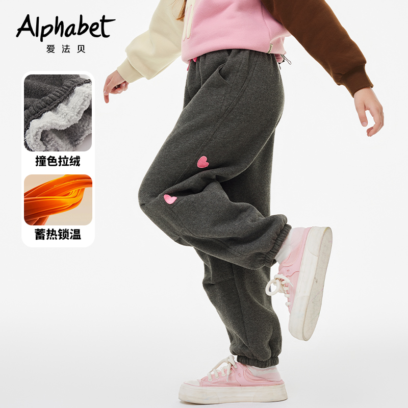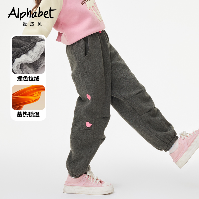 女童休闲运动裤 2025秋冬新款 中大儿童黑色针织长裤 拉绒