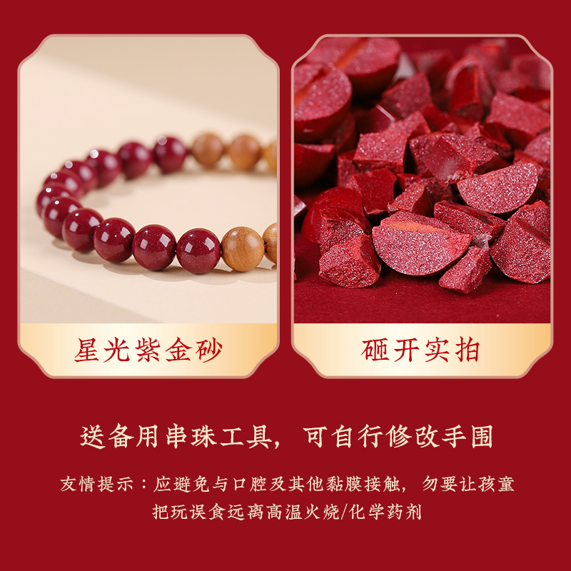 一半桃木一半朱砂桃木手串新中式 护身桃木朱砂手链龙年本命年礼物