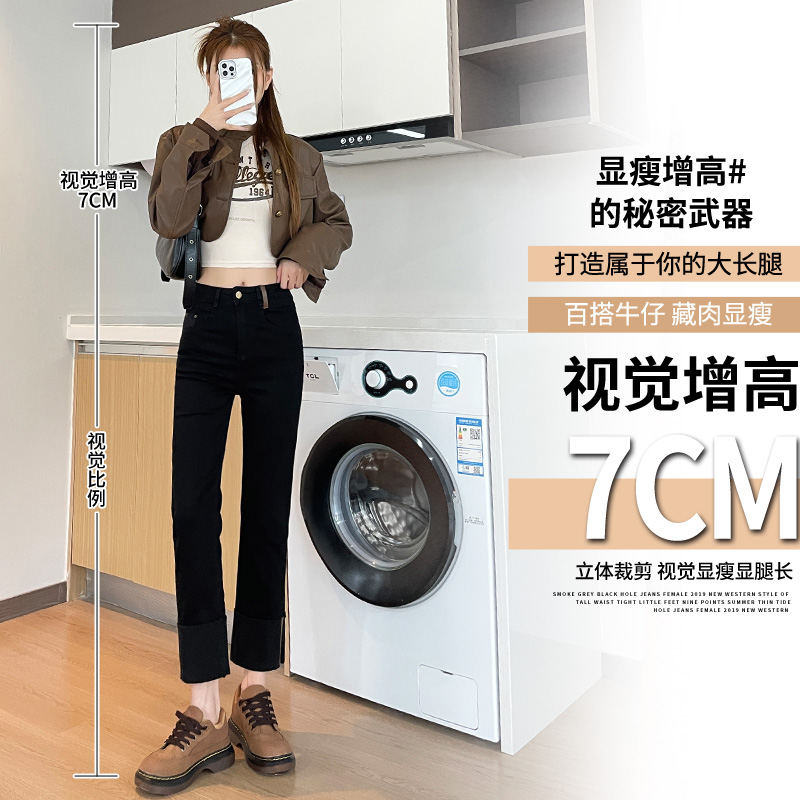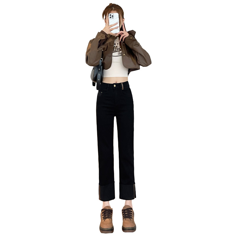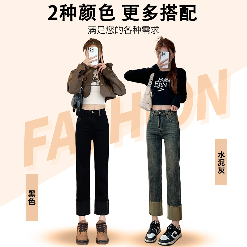 子高腰垂感宽松显瘦直筒裤 撞色翻边阔腿牛仔裤 裤 2025新款 女春秋季