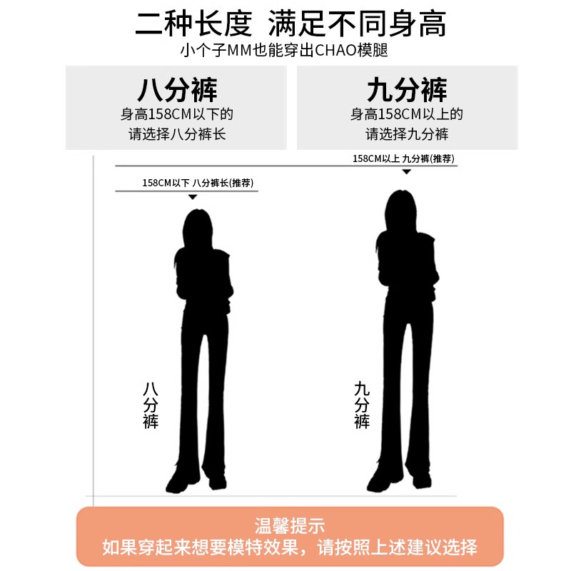 显瘦微喇叭拖地裤 蓝色假两件屁帘牛仔裤 荷叶边拼接修身 新款 女秋季