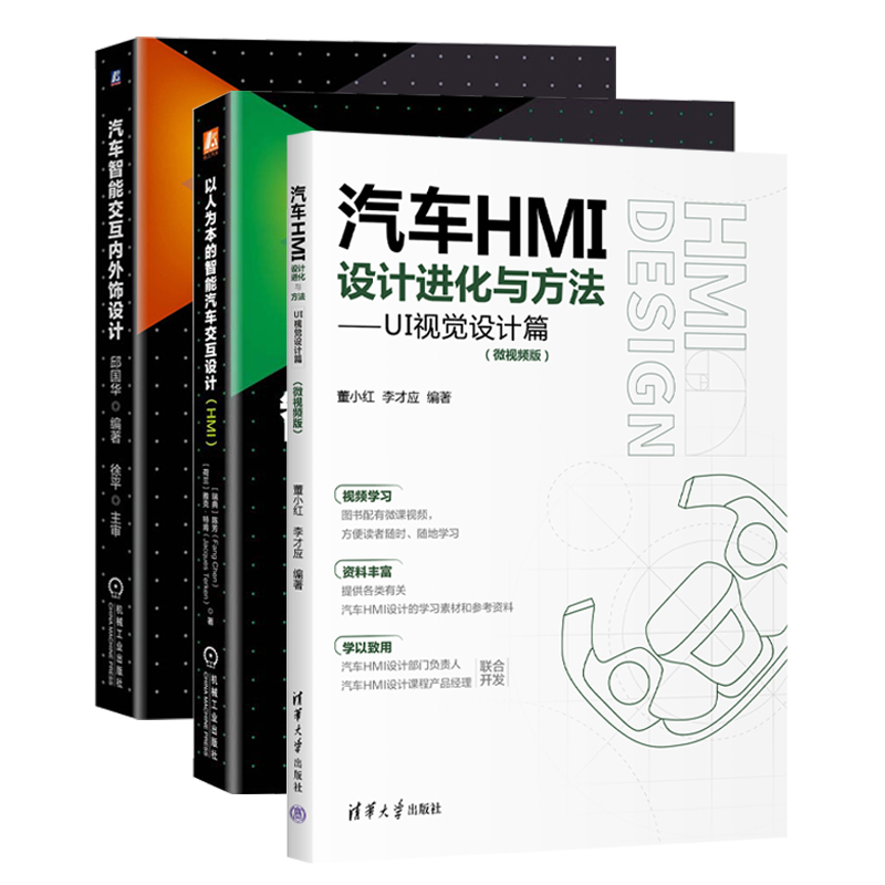 以人为本 UI视觉设计篇 智能汽车交互设计 HMI 汽车工程HMI视觉设计方法书籍 3册 汽车智能交互内外饰设计 汽车HMI设计进化与方法