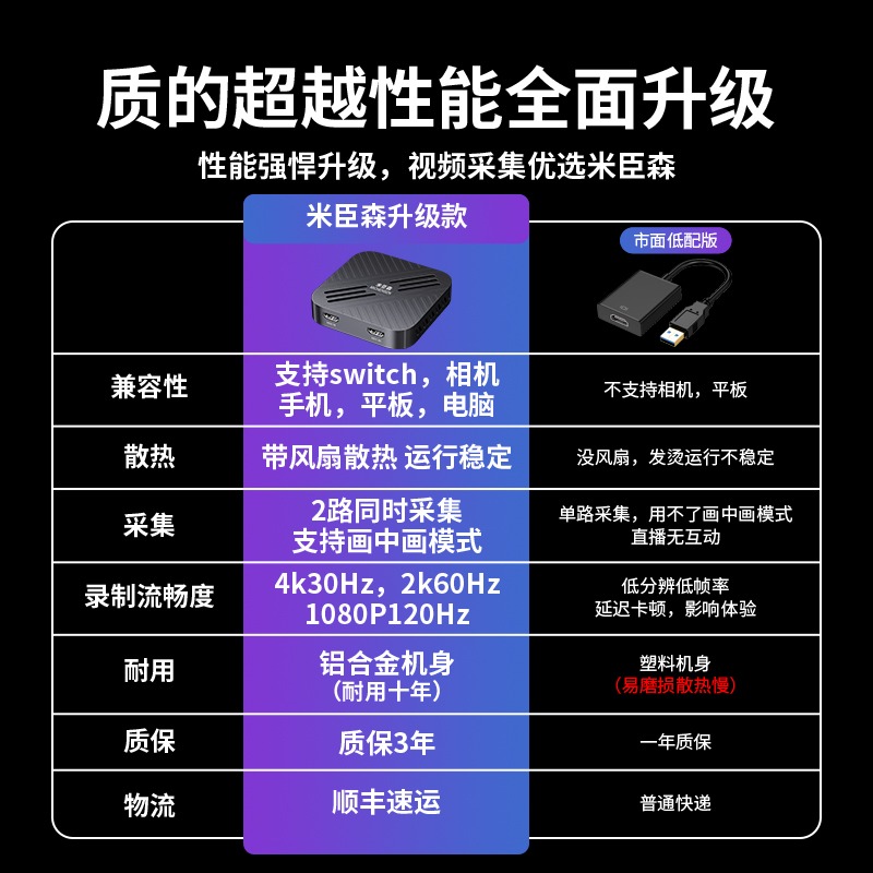 米臣森 双路2路HDMI视频采集卡4k直播专用单反摄像相机手机双机位