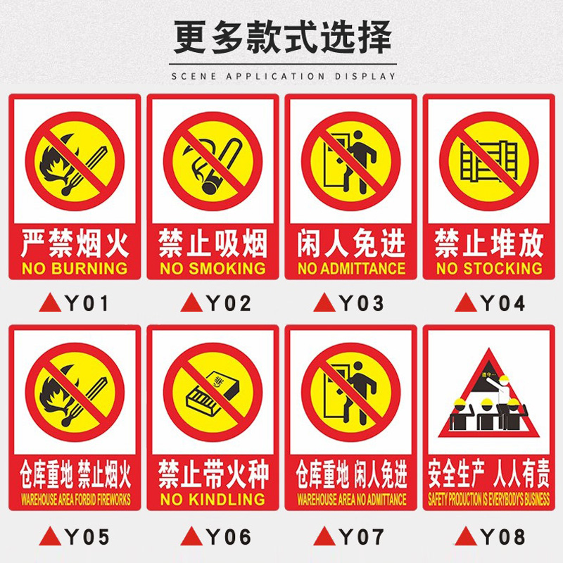 严禁烟火标识禁止吸烟提示牌贴纸仓库重地禁烟贴消防安全警示注意防火请勿禁止火种堆放当心触电火灾标示贴纸
