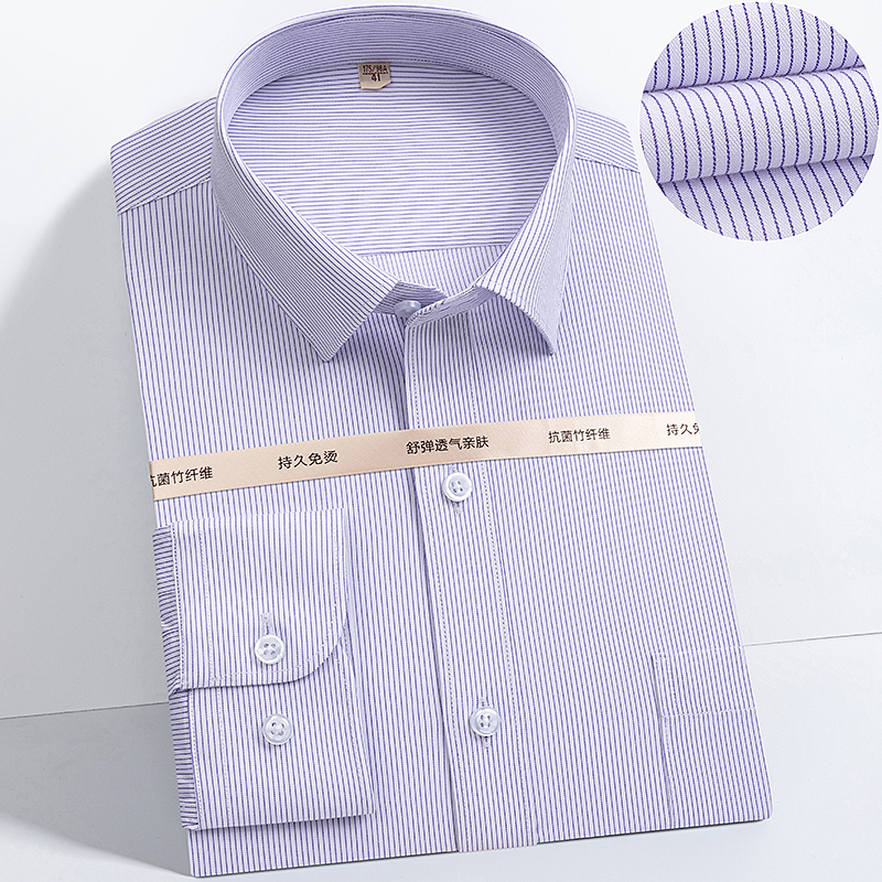 冰丝抗皱中年薄款 衬衫 商务正装 条纹式 var竹纤维男士 寸衣新款 长袖