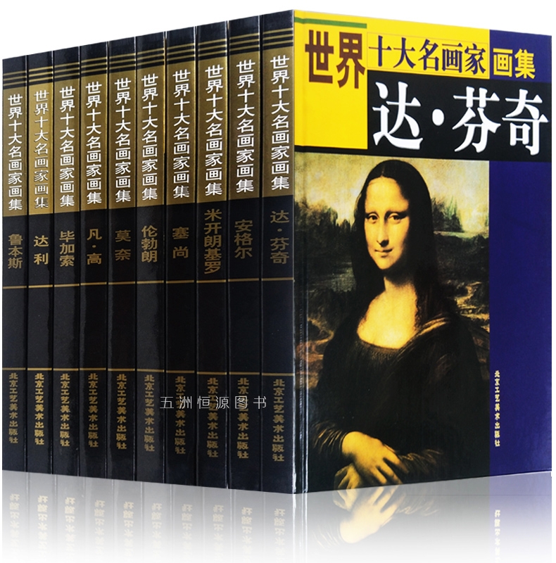 包邮 达芬奇毕加索凡高塞尚莫奈米开朗基罗达利安格尔鲁本斯伦勃朗画集绘画经典 世界十大名画家画集全10册精装 纸彩图 作品 铜版 正版