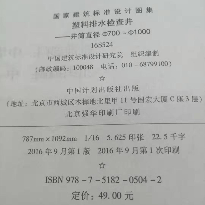 国家建筑标准设计图集 井筒直径Φ700~Φ1000 16S524 塑料排水检查井