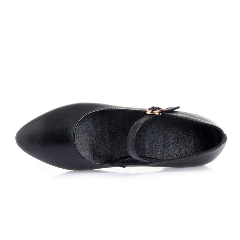 单鞋 羊皮浅口法式 千百度粗高跟鞋 异形跟职业通勤大码 静音系列
