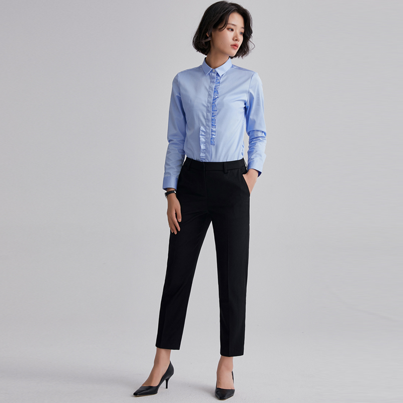 职业装 女韩版 秋装 新款 气质工作服木耳边棉衬衣 宿·色长袖 修身 衬衫