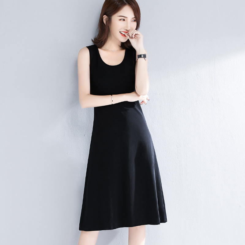 无袖 黑色修身 内搭吊带a字裙中长款 西装 打底背心裙子 连衣裙女夏季