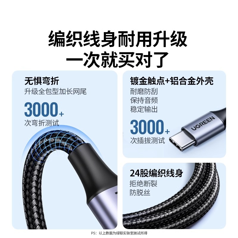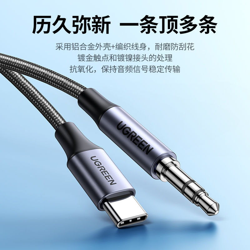 绿联aux音频线车用typec转3.5mm连接车载音响音箱播放器汽车耳机线双头插输出转接换适用于苹果安卓手机平板