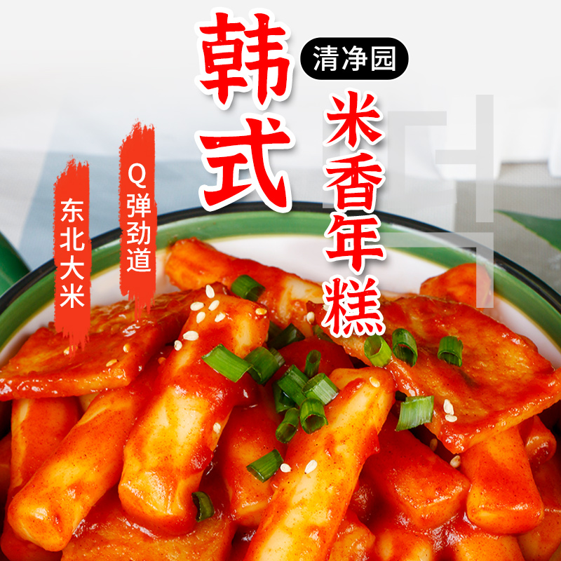 清净园韩式 3袋家用即食速食火锅食材韩国辣炒年糕 米香年糕条450g