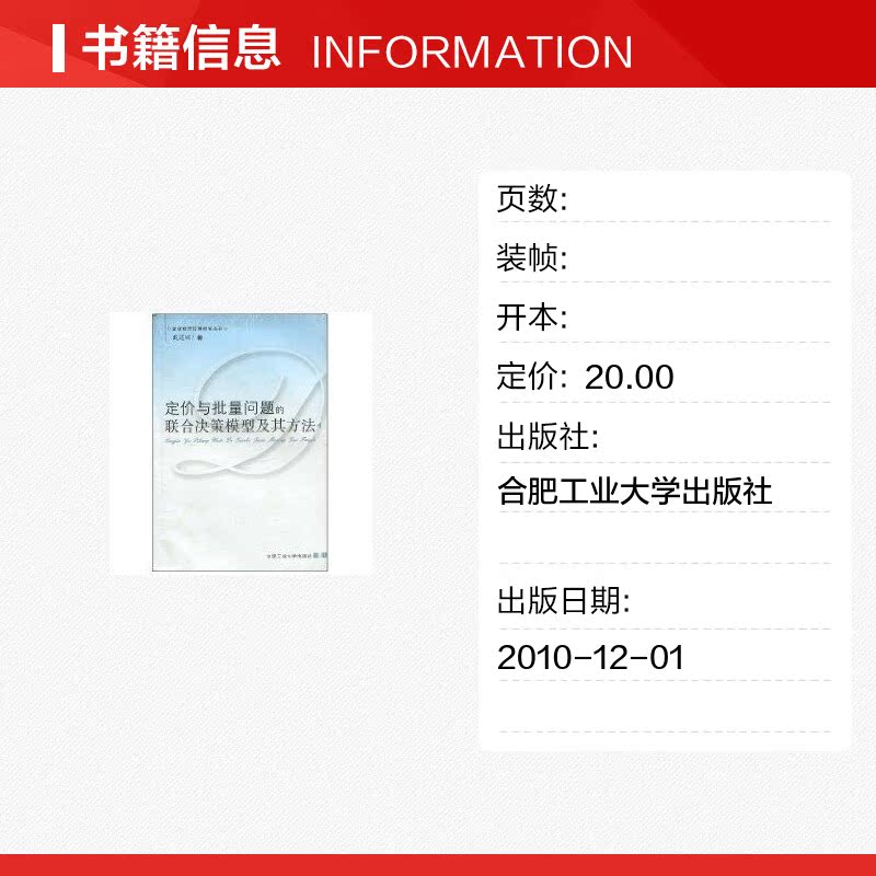 励志 社 戴道明 合肥工业大学出版 图书籍 新华书店正版 广告营销经管 著 著作 联合决策模型及其方法 定价与批量问题