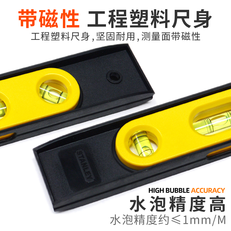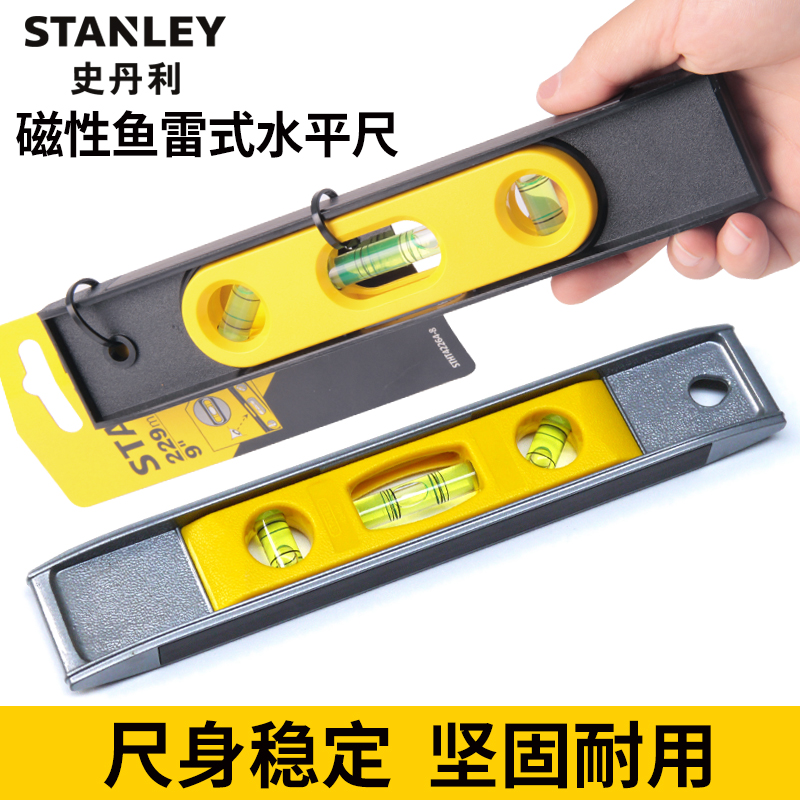 史丹利磁性鱼雷式 水平尺9寸家用多功能迷你小型45度垂直测量尺子