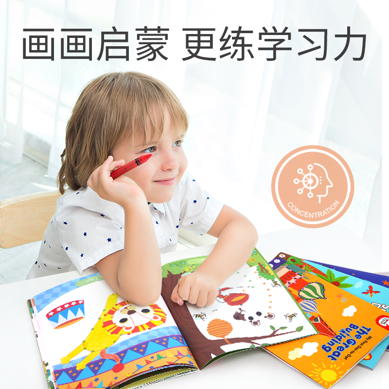 美乐童年连点画儿童涂色书幼儿园宝宝画画数字连线本填色图画绘本