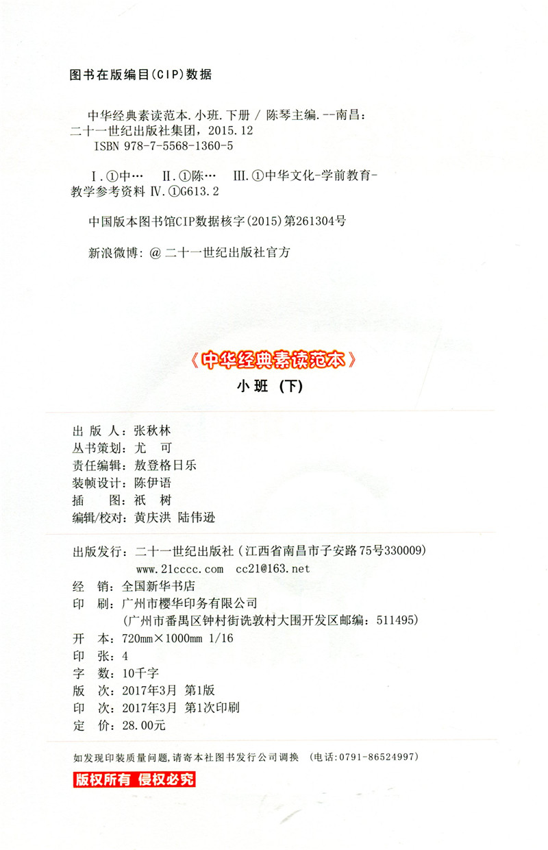 幼儿绘图版 下册 现货 素读范本 推荐 二十一世纪 正版 国学经典 小班 中华经典 配光盘 共2本 上册 试验用书幼儿启蒙读物 陈琴主编