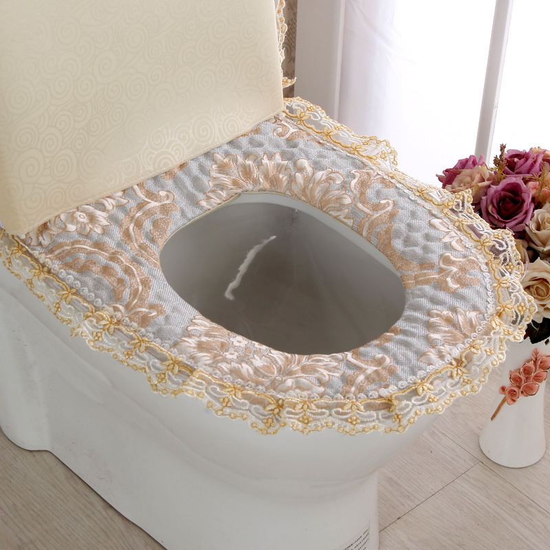 马桶座圈坐便马桶罩子 加厚马桶套U型拉链式 欧式 布艺马桶垫三件套