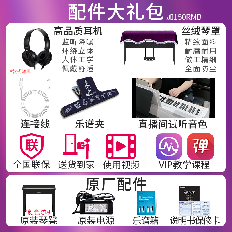 雅马哈电钢琴P 电子钢琴88键重锤成年初学者专业家用125A 225B数码