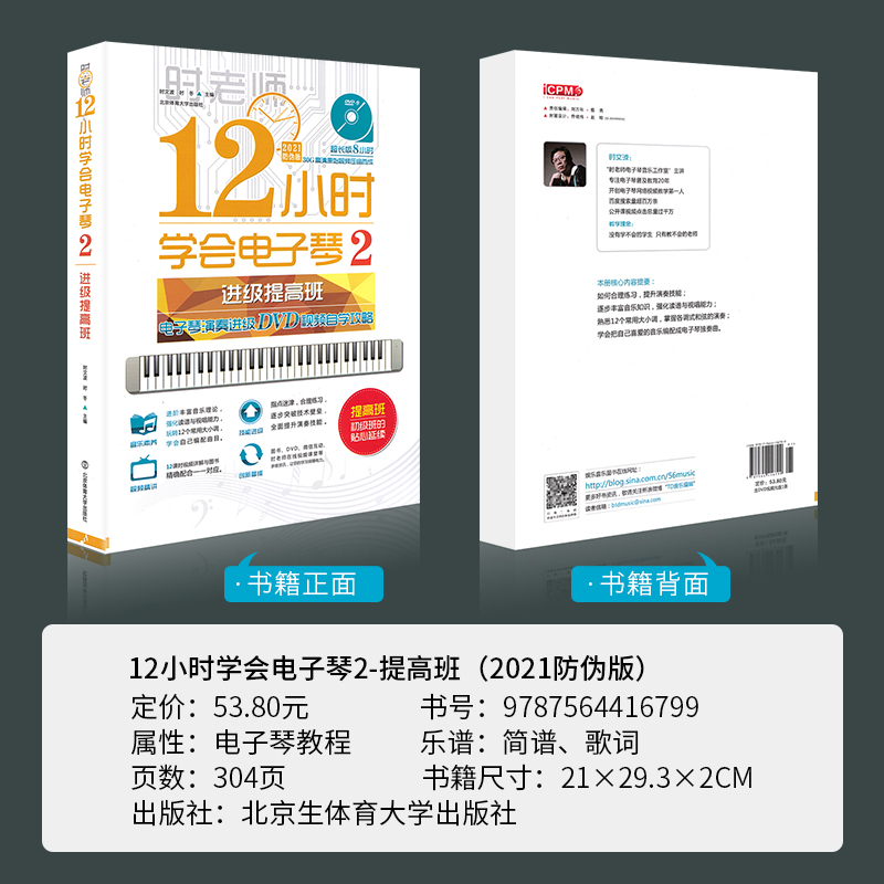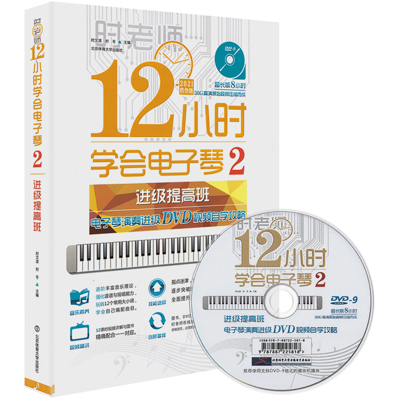 时冬歌词 时文波 教程材学书籍 电子琴演奏进级DVD视频自学攻略进级提高班北京体育大学出版 12小时学会电子琴2
