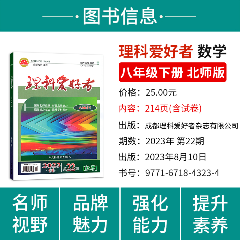 复习综合测评试卷 赠试卷 课堂同步演练课后练习册专题训练单元 理科爱好者八年级下数学北师版 第22期理科爱好者数学 2024春新版